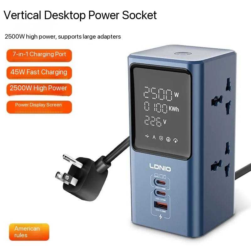 LDNIO multi-function fast charging PD45W universal standard 2m long power socket