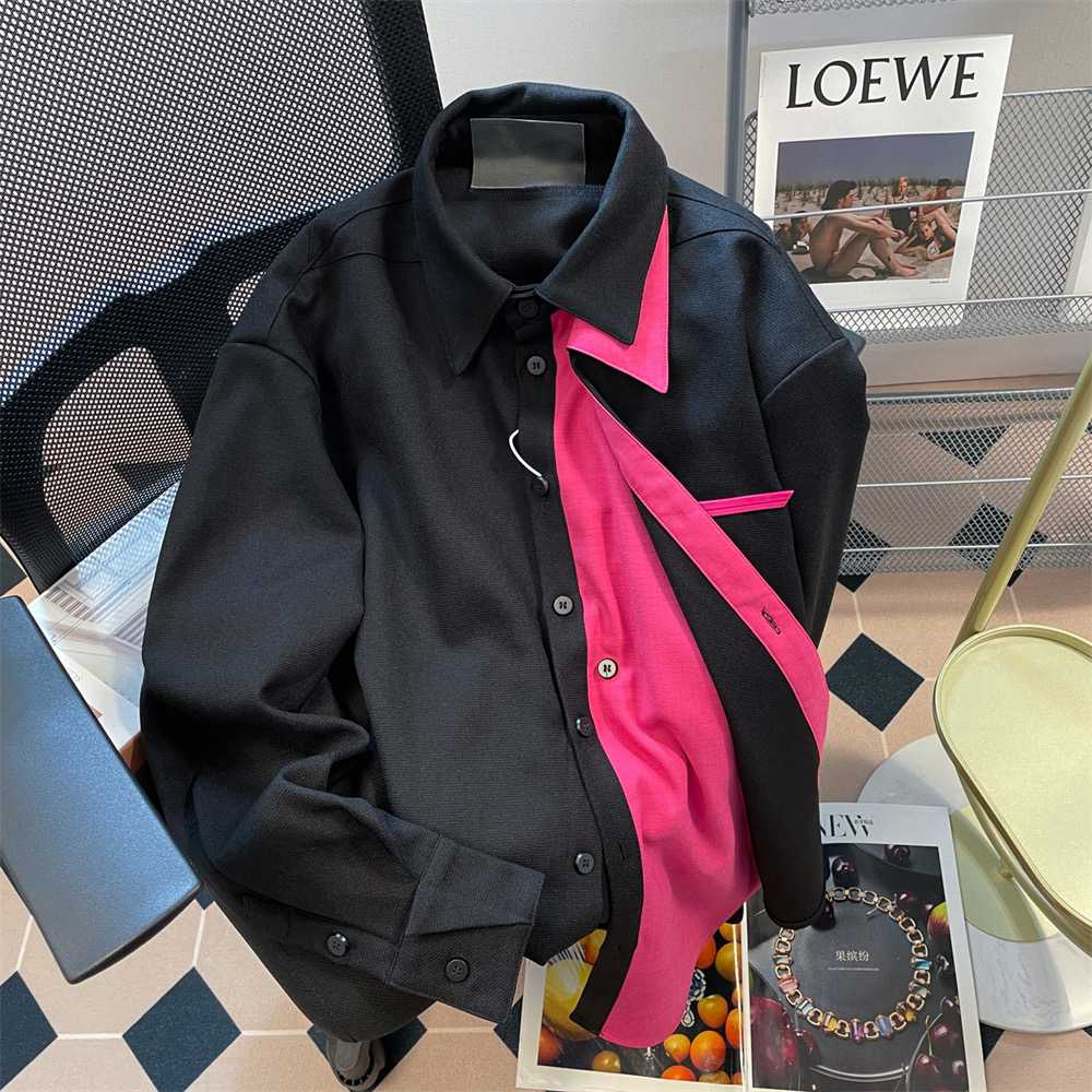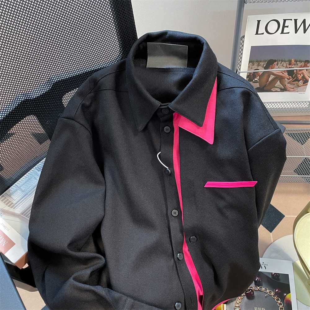 Design sense niche contrast color plankton handsome long sleeve shirt for men and women spring and a