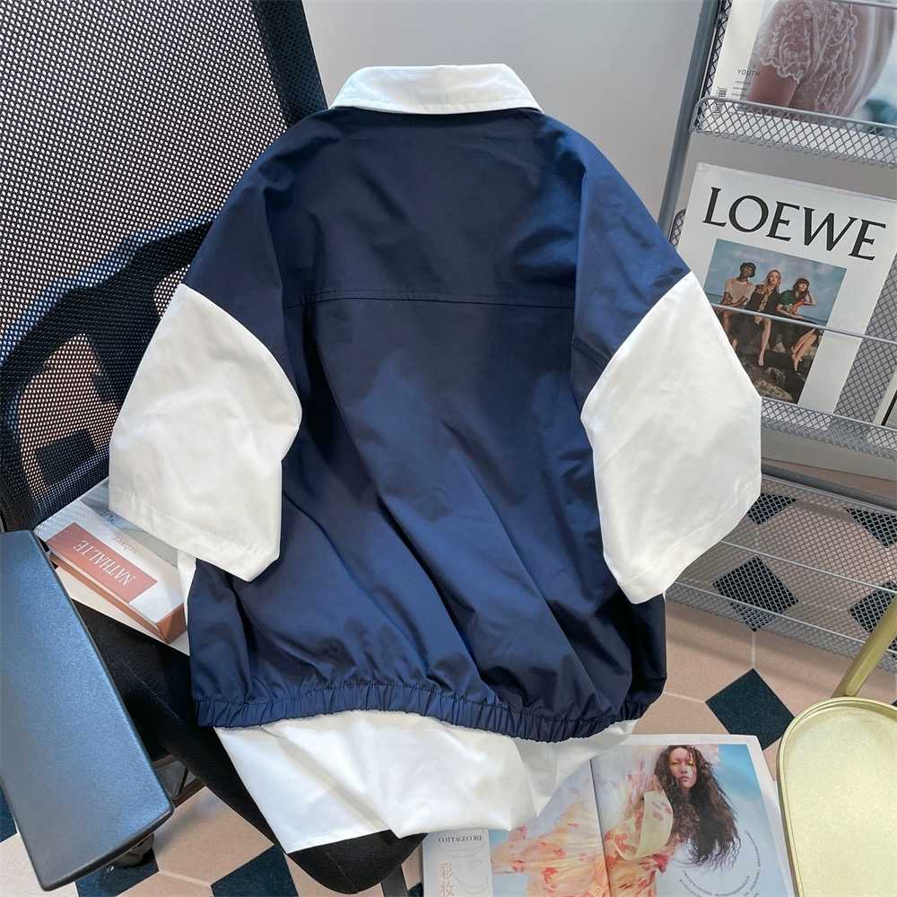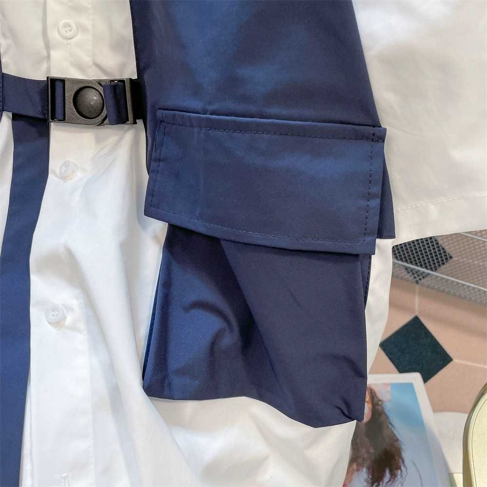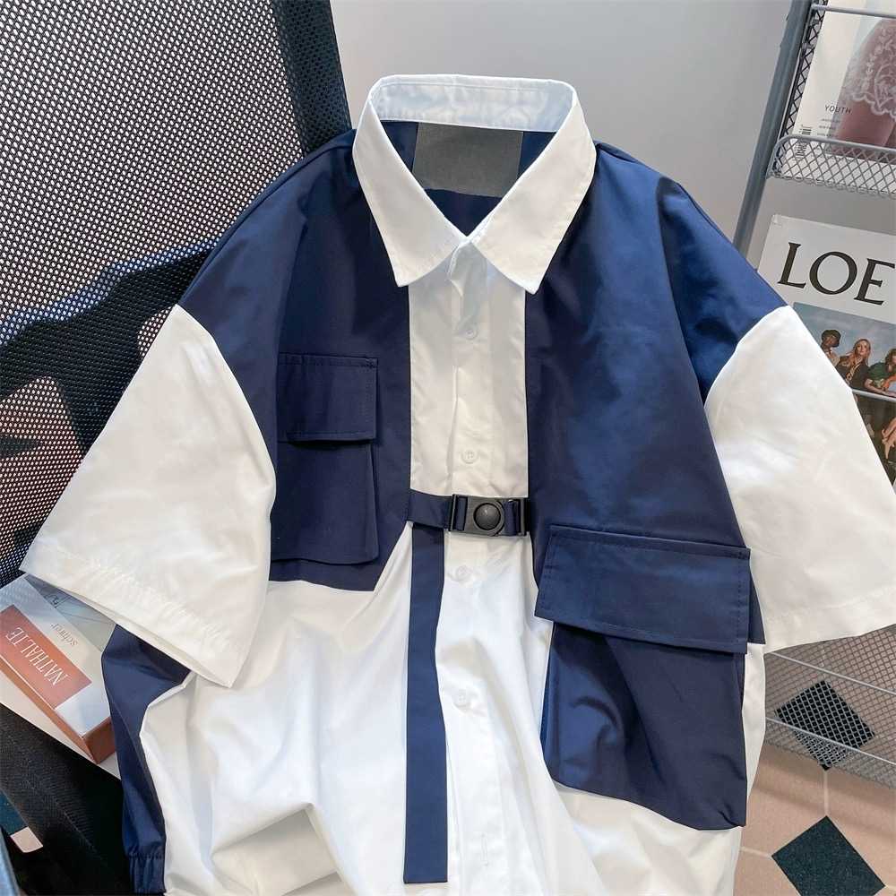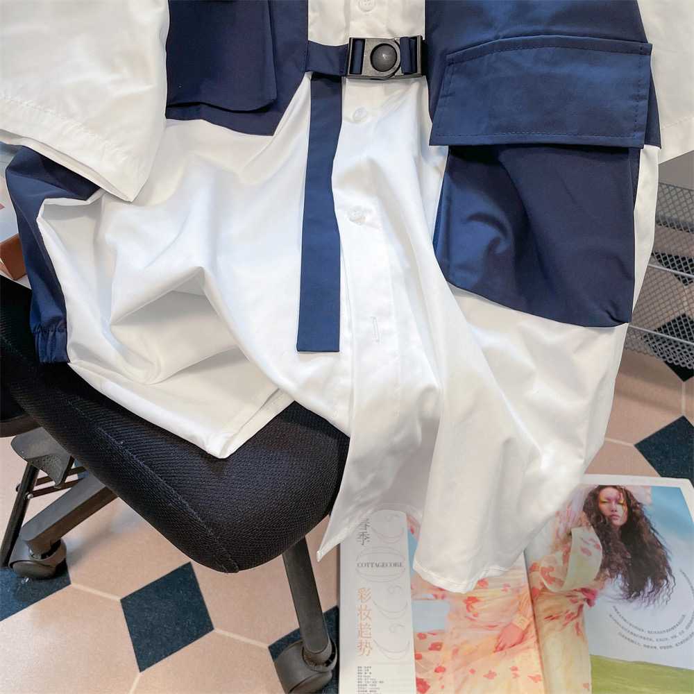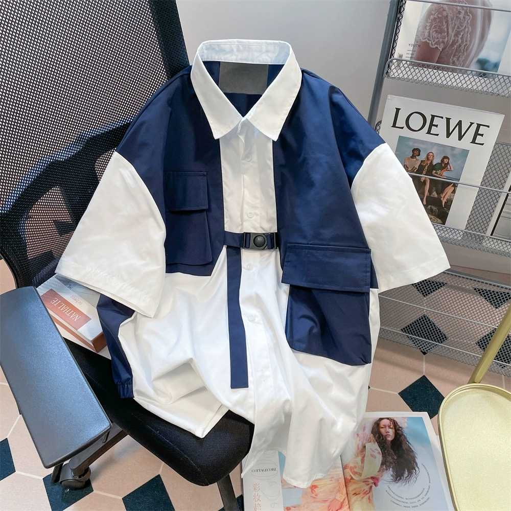 niche color patchwork fake two cargo shirts for men and women summer leisure port wind ruffie handso