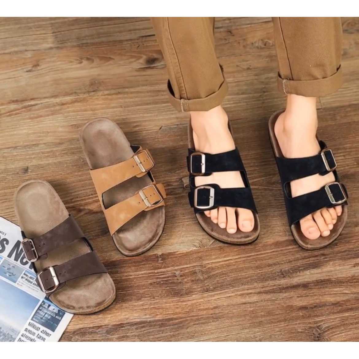 Men Double Buckle Comfort Sandals