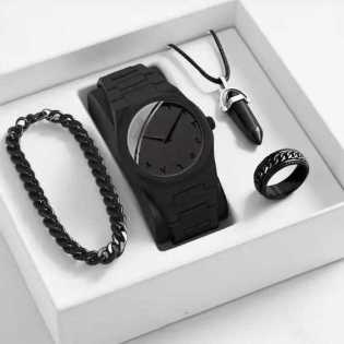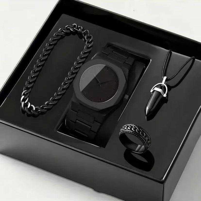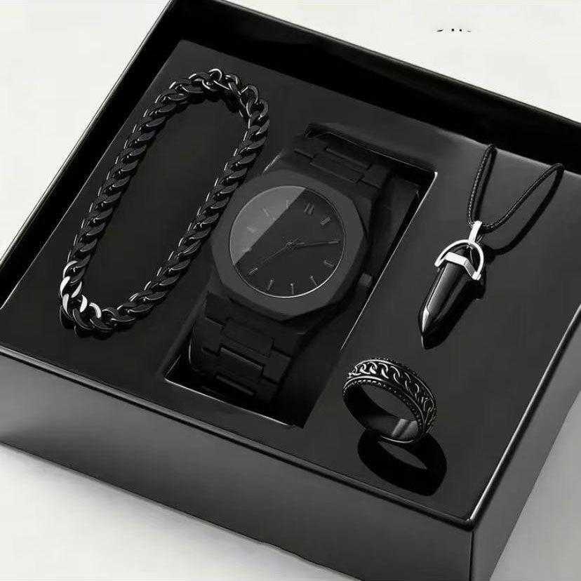 Luxury 4in1 All-Black analog Quartz Watch Set for Men