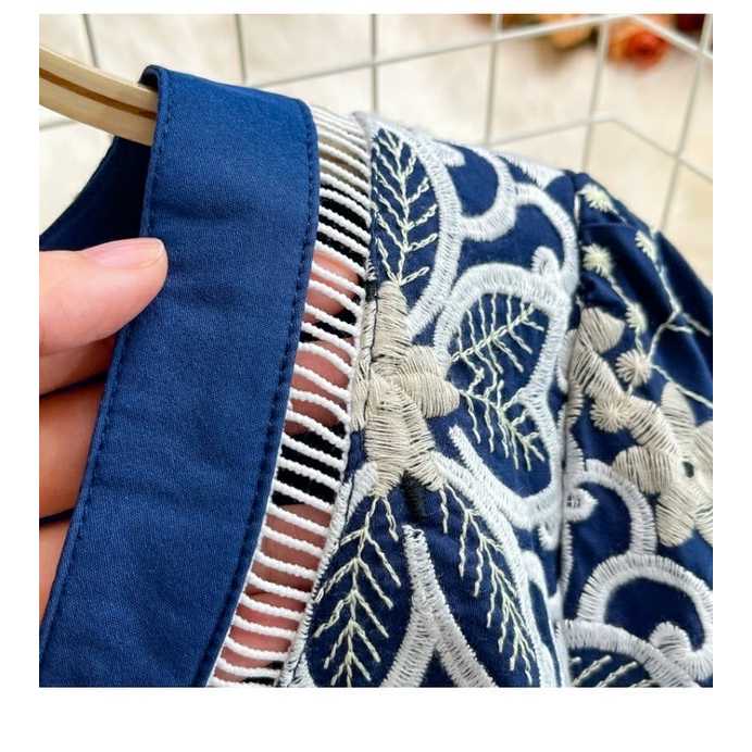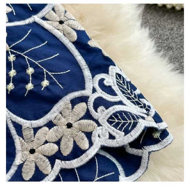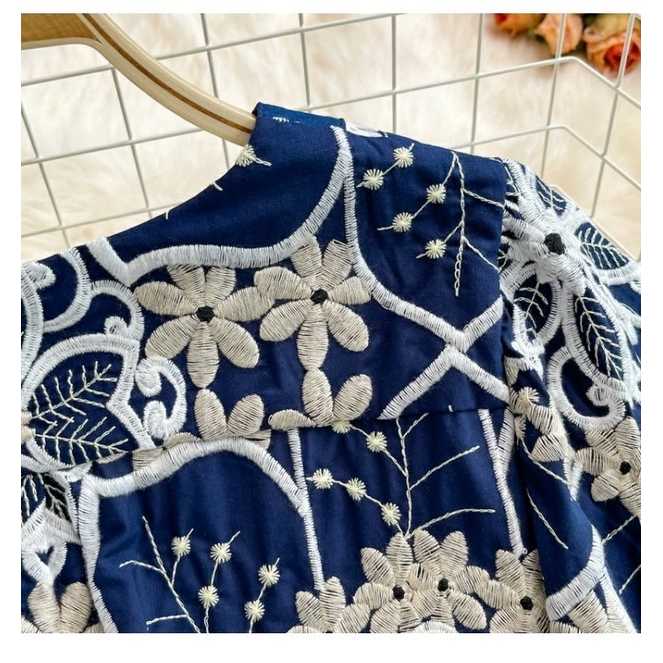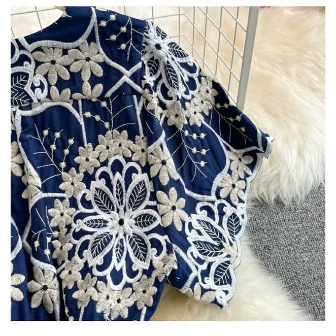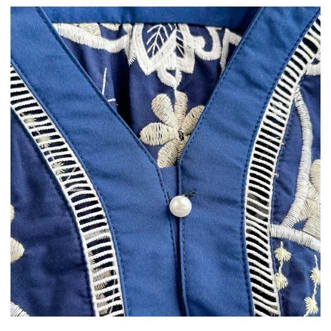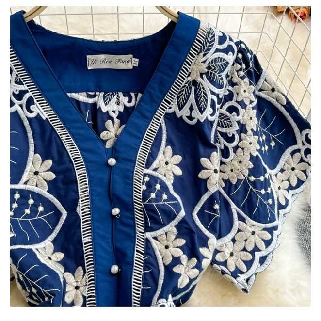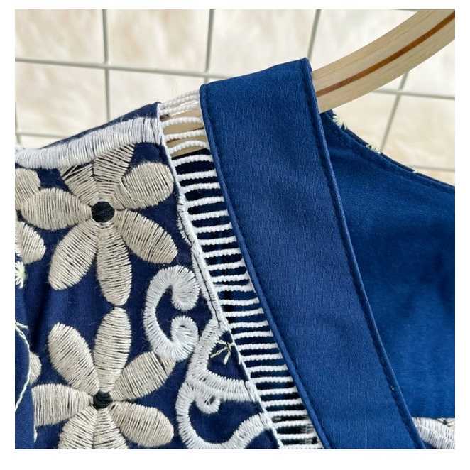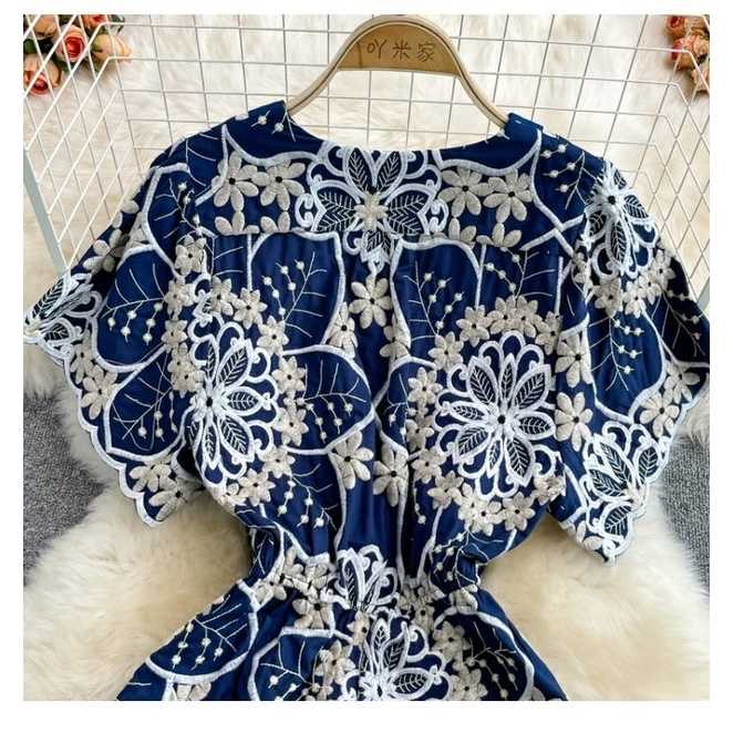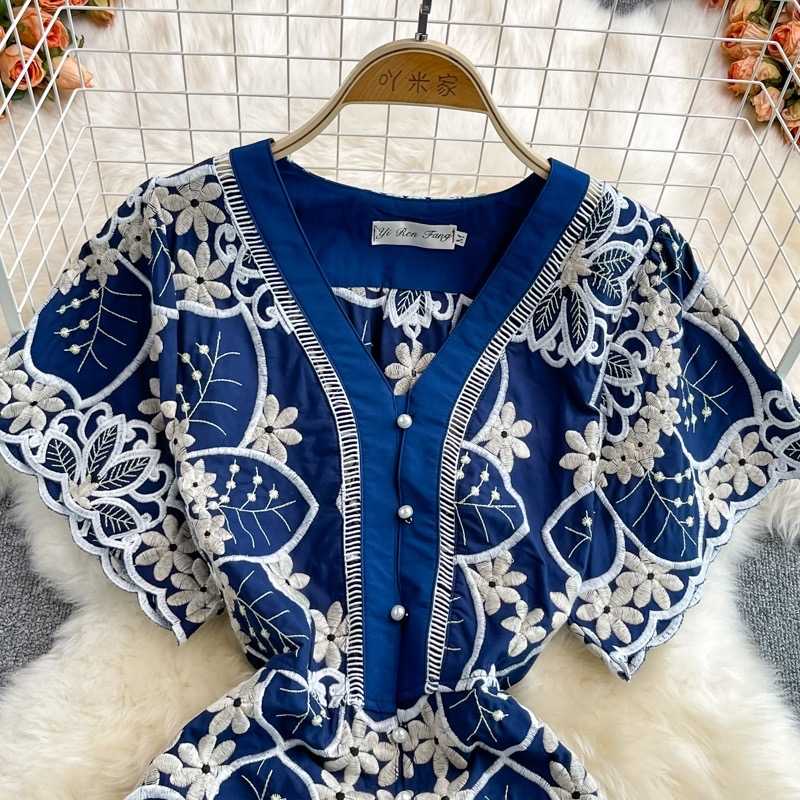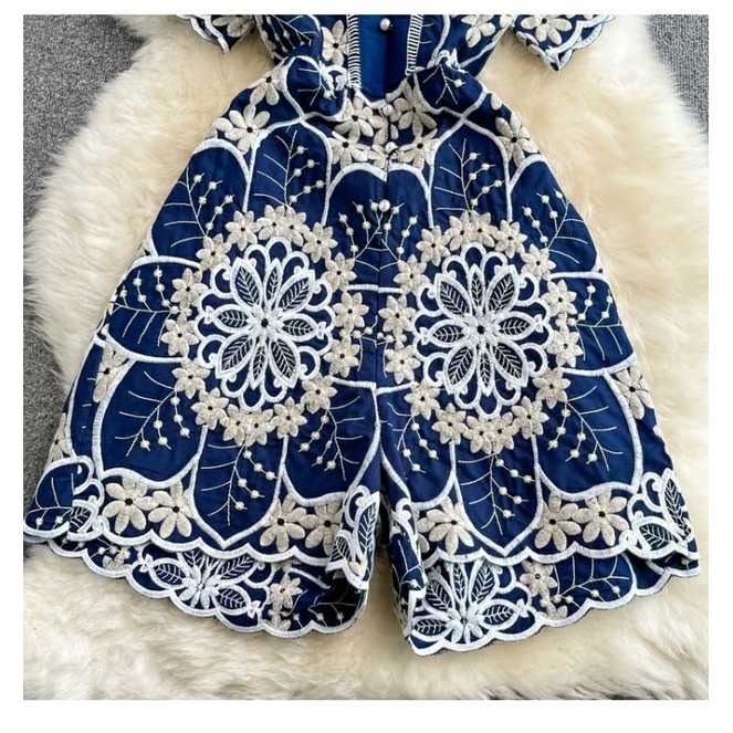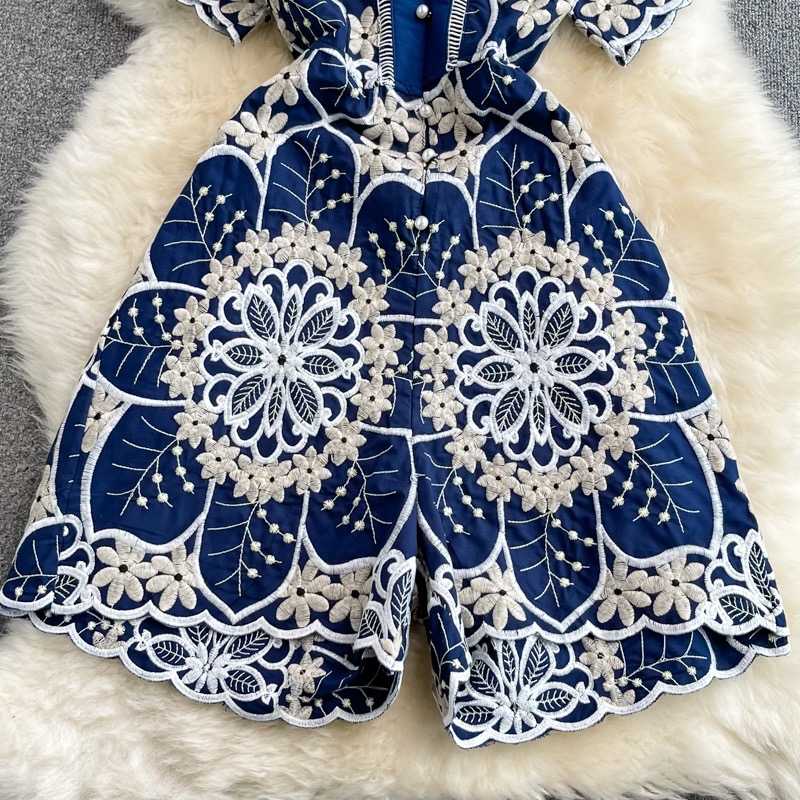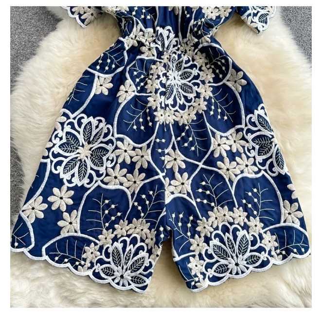 new summer vintage V-neck heavy embroidered fashion wide leg jumpsuit