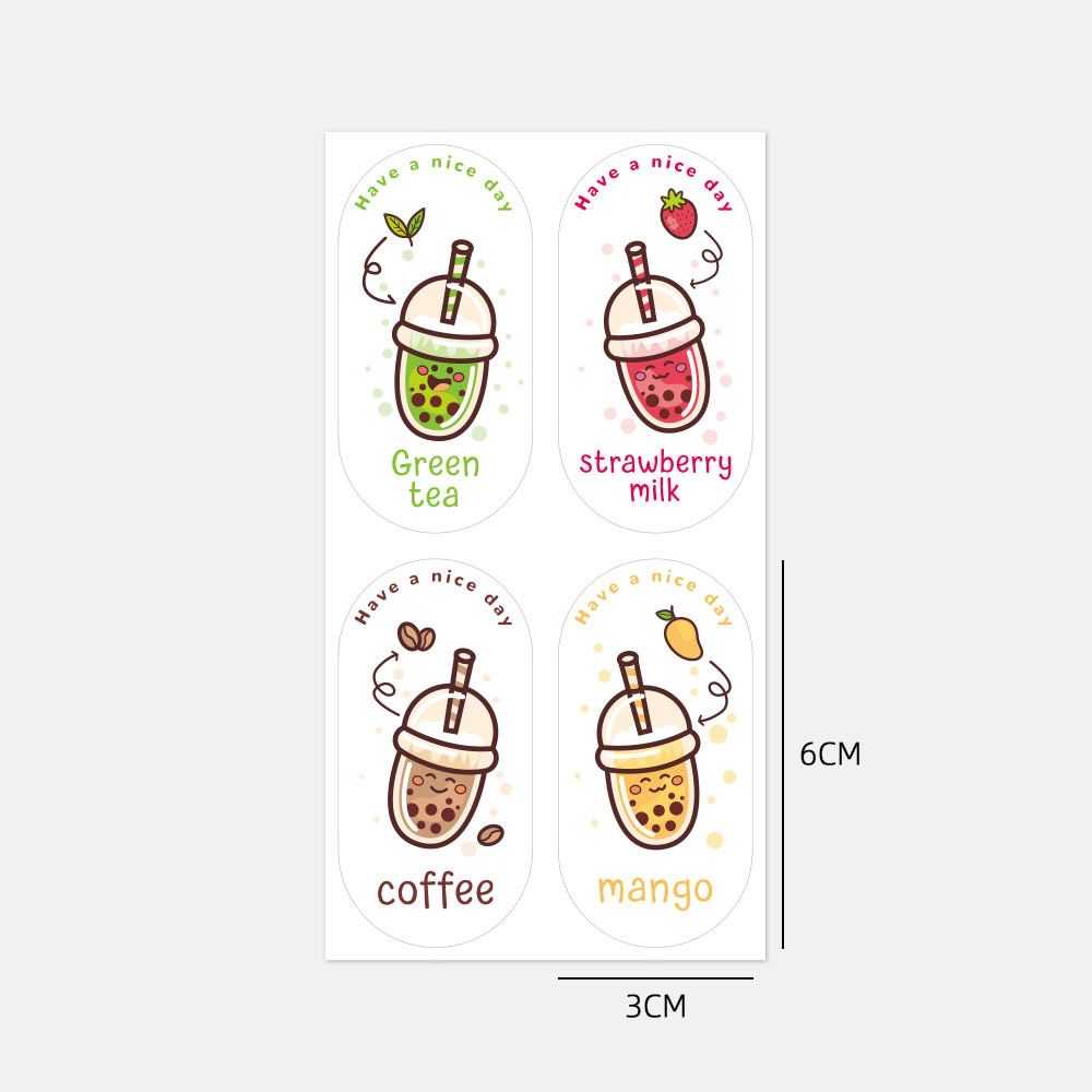 100 pieces/pack cute oval milk tea sticker