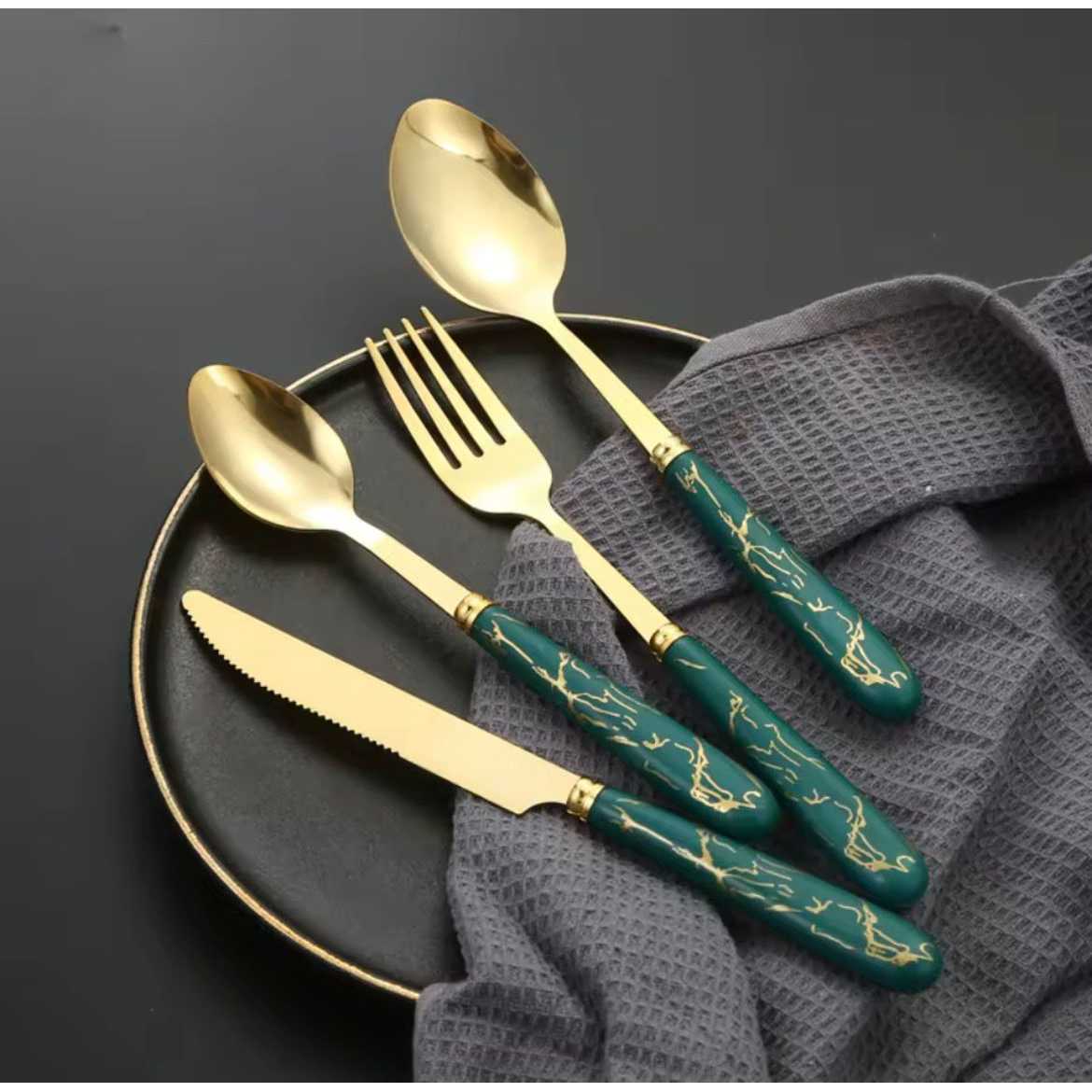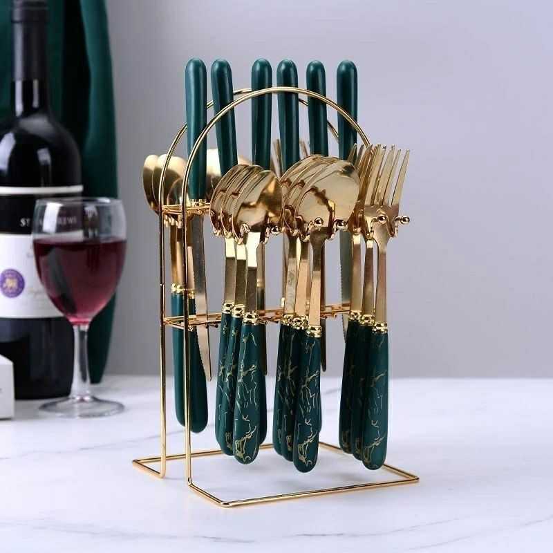24Pcs Luxury Gold Stainless Steel Cutlery Set