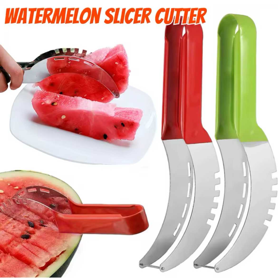 1.Versatile and Multi-functional: The watermelon slicer cutter knife allows you to slice, de-seed, and serve fruits effortlessly. Perfect for slicing watermelons, cantaloupes, honeydews, and many other fruits and foods.