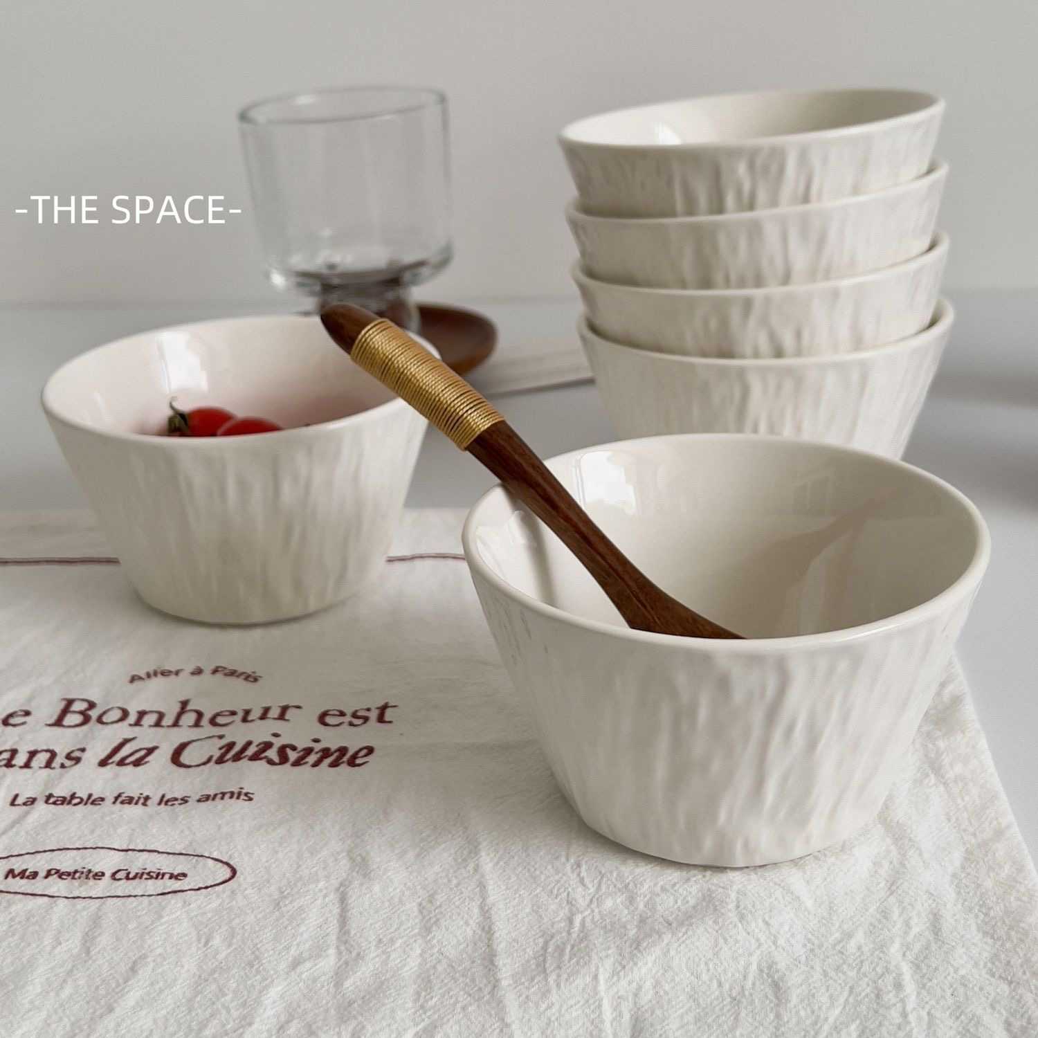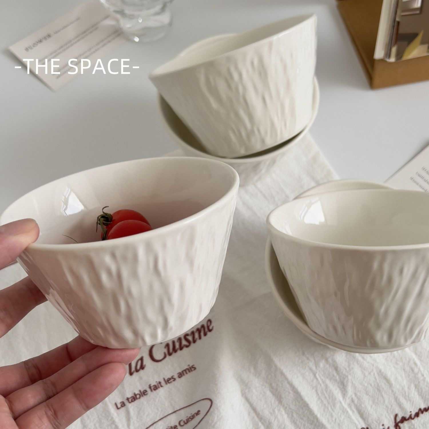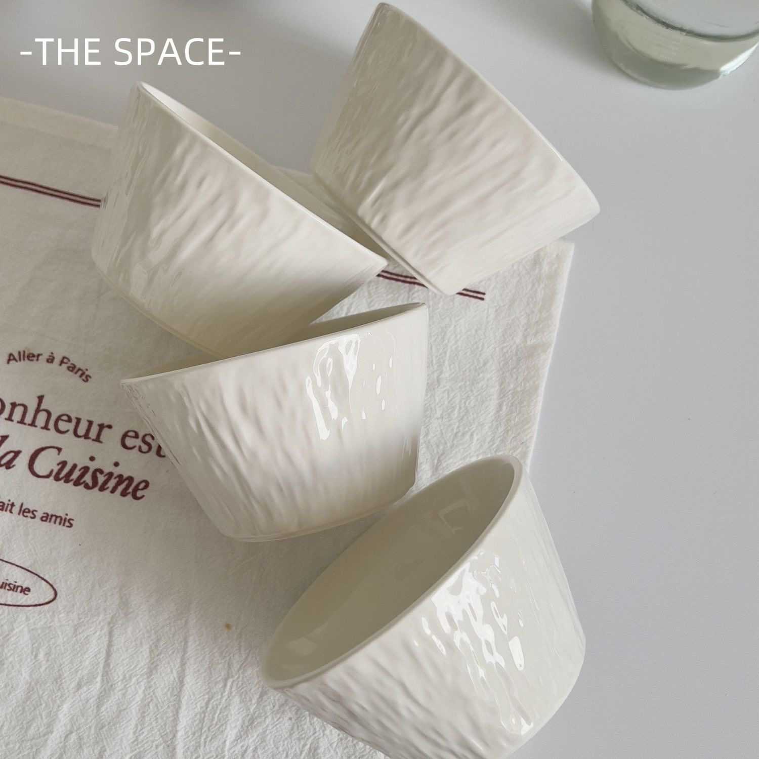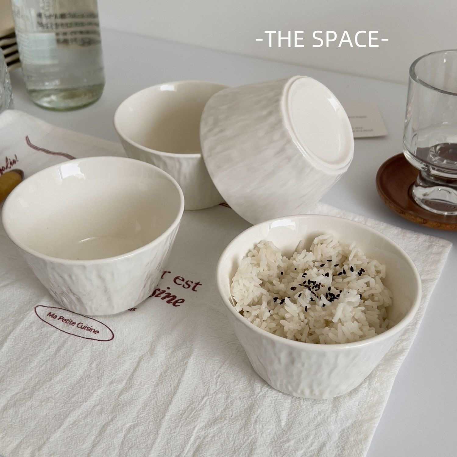 4pcs Textured ins style ceramic stone pattern household rice bowl