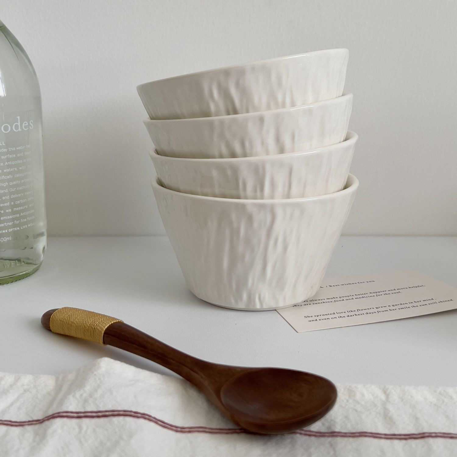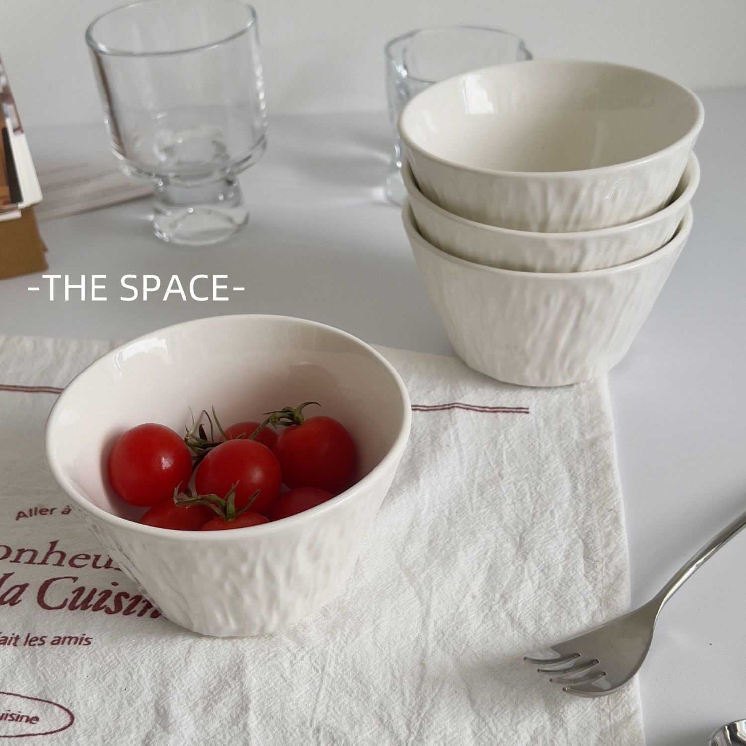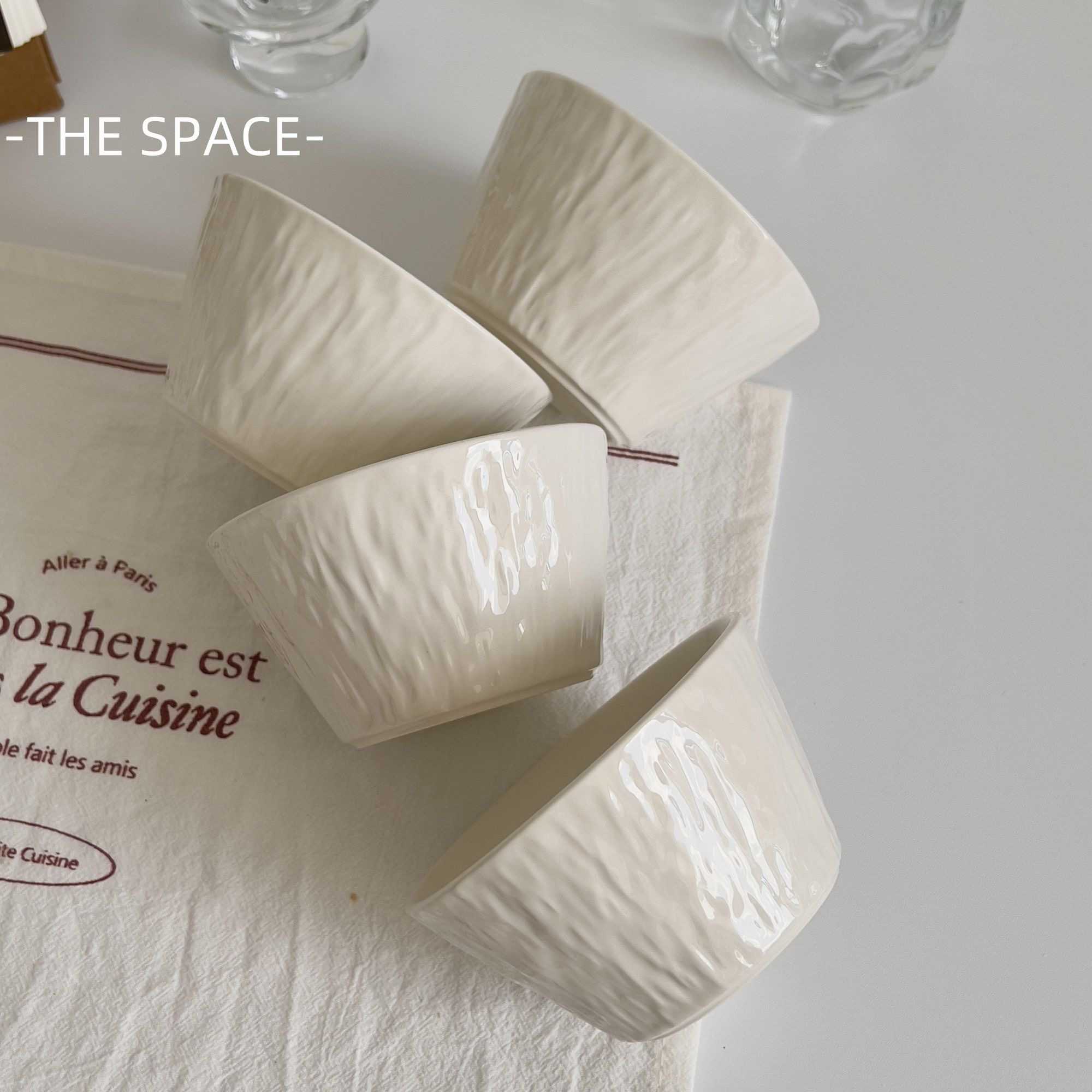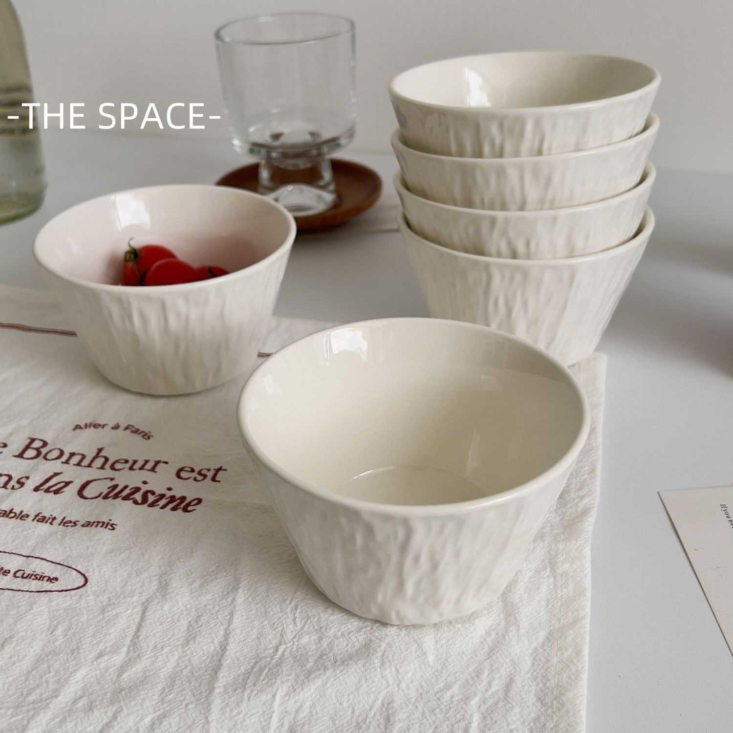4pcs Textured ins style ceramic stone pattern household rice bowl