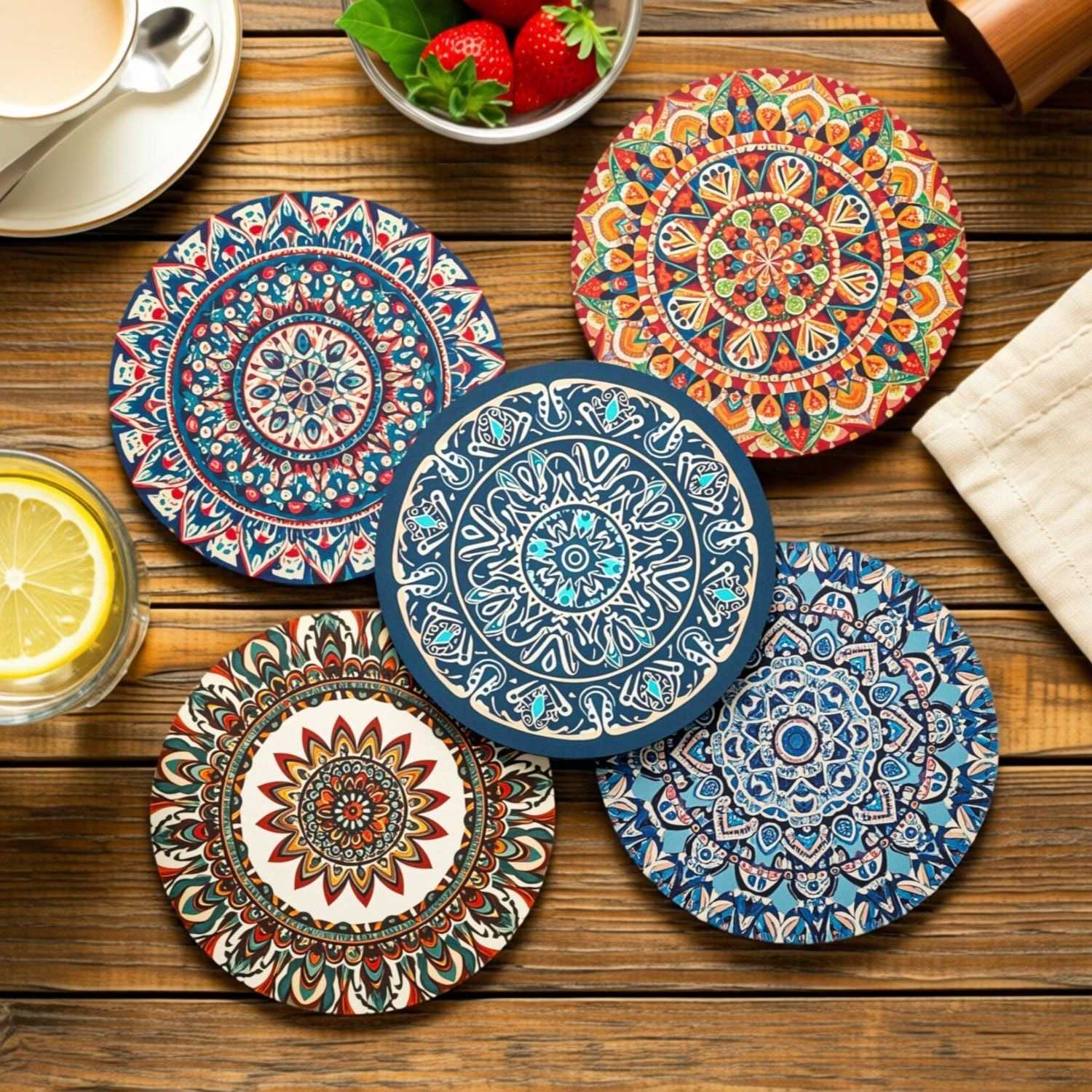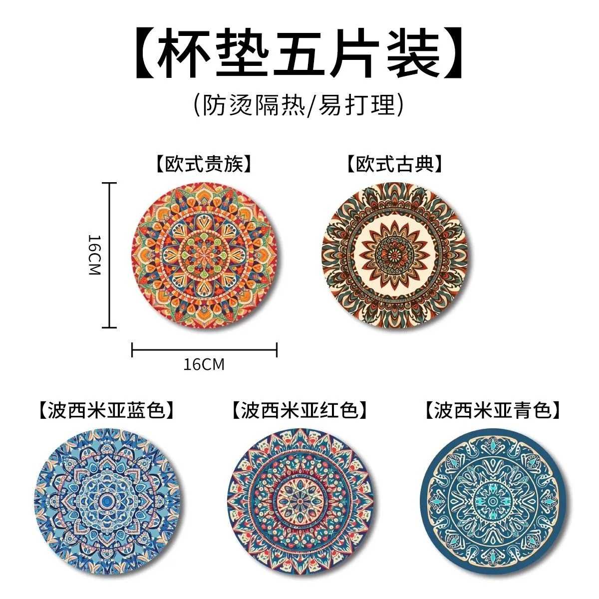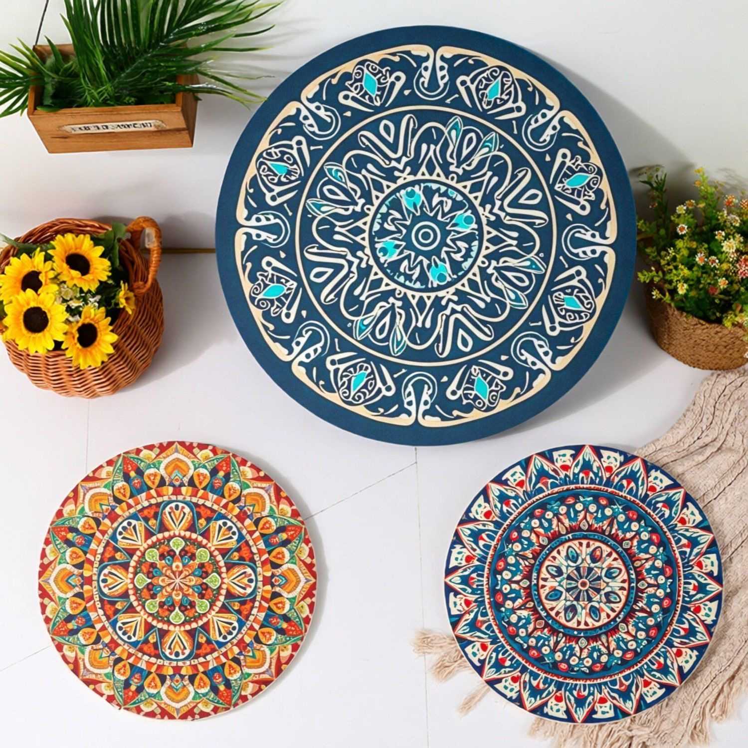 Bohemian anti-slip table coasters set 12cm/16cm