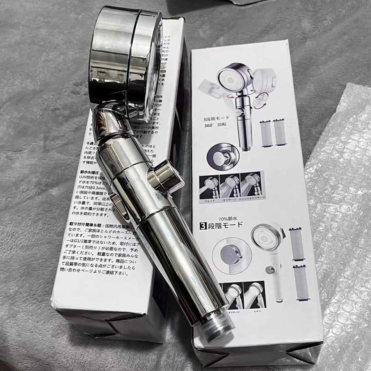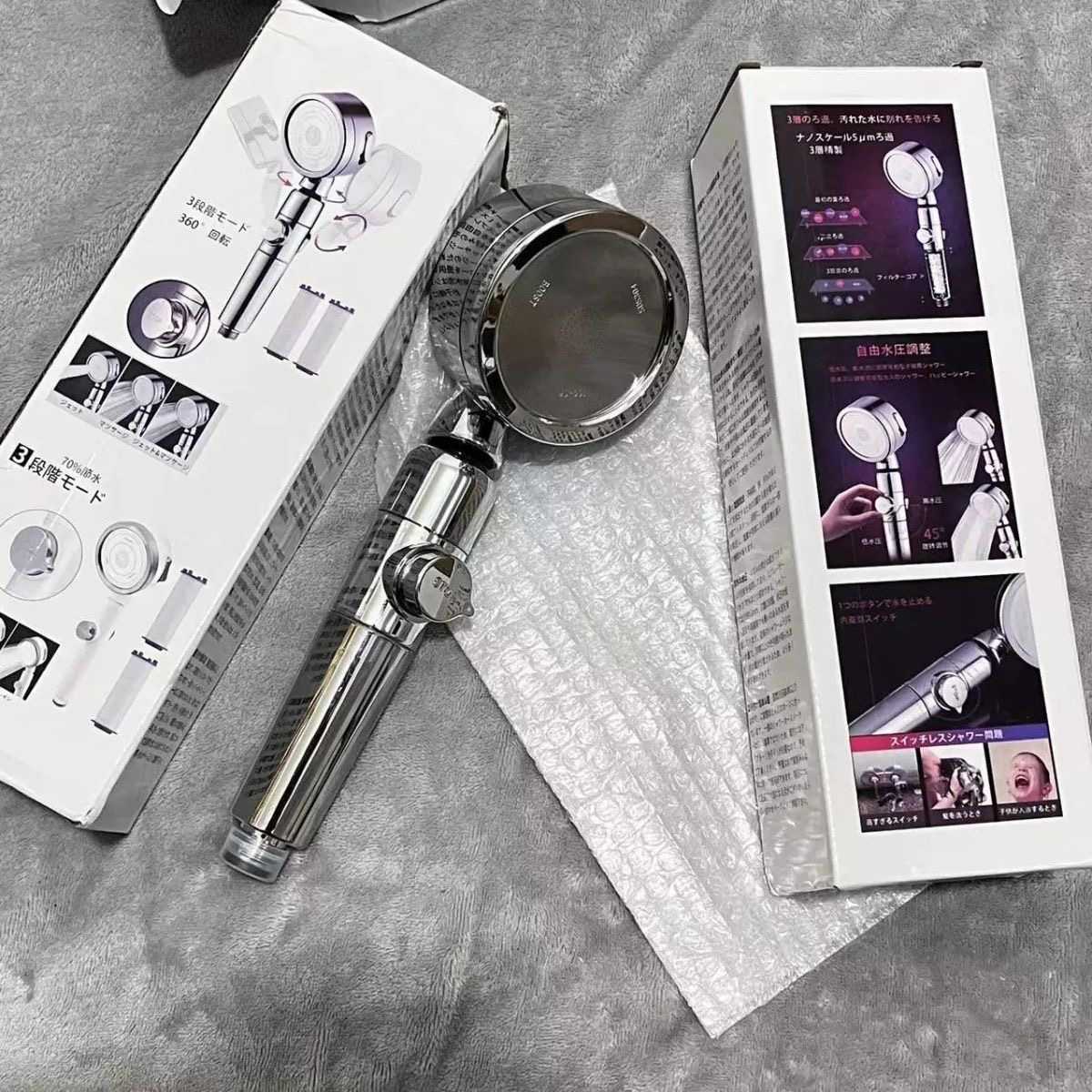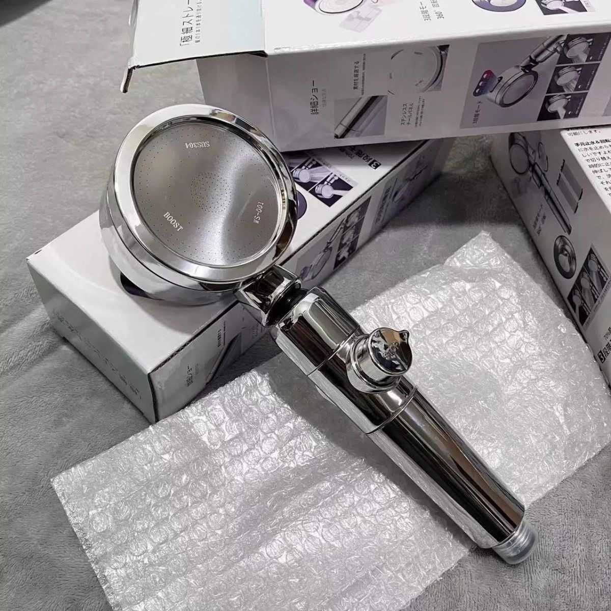 Luxury supercharged three-speed one-button water stop spray head