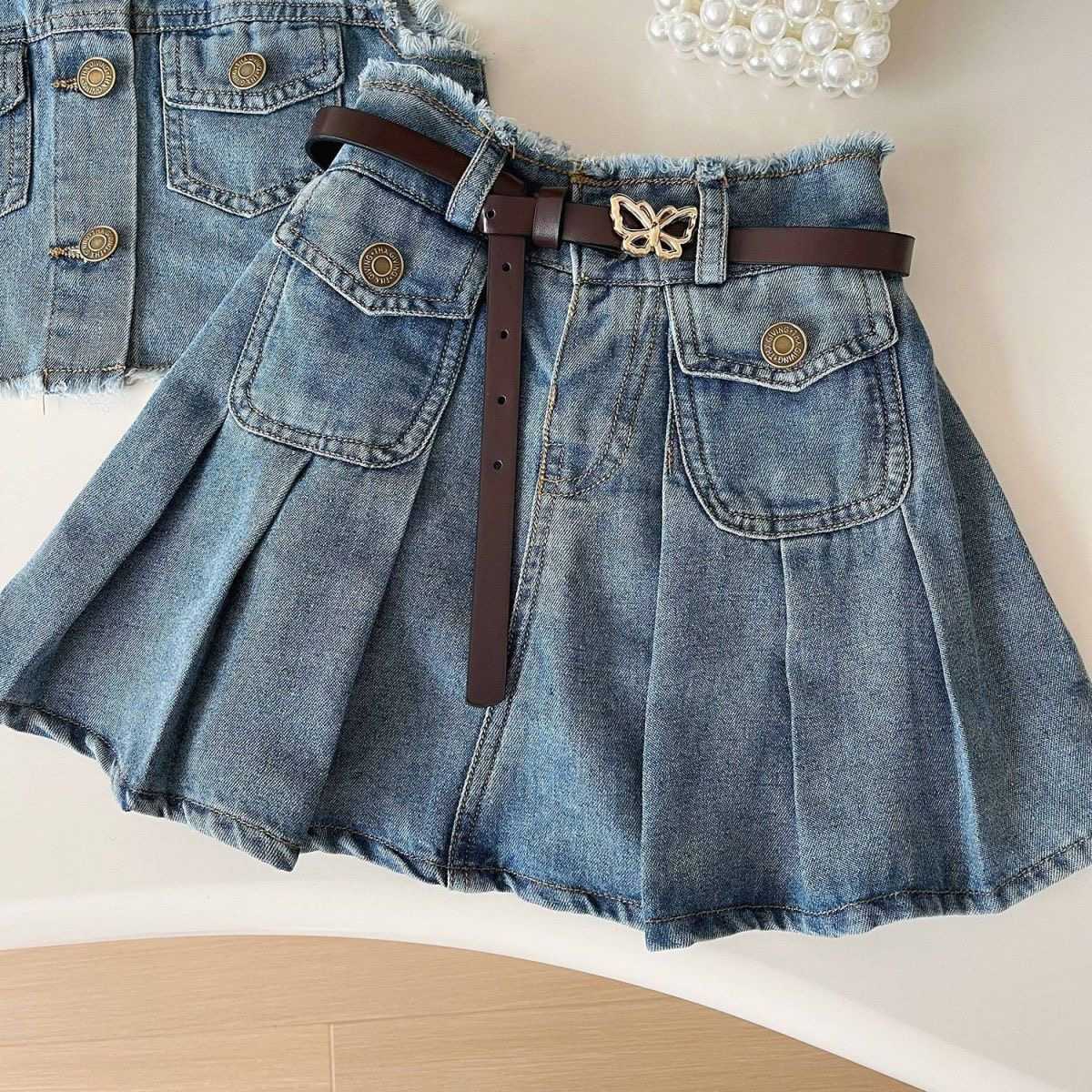 fashionable sleeveless short top + short skirt two-piece set
