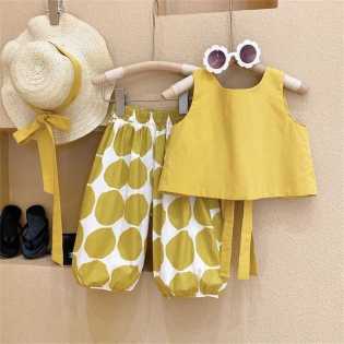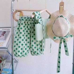 girl's vest top + polka dot lantern pants two-piece summer set