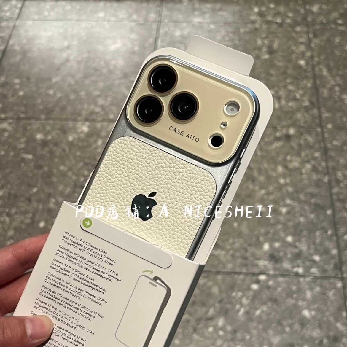 moonlight white lychee leather pattern Apple 17Promax mobile phone case