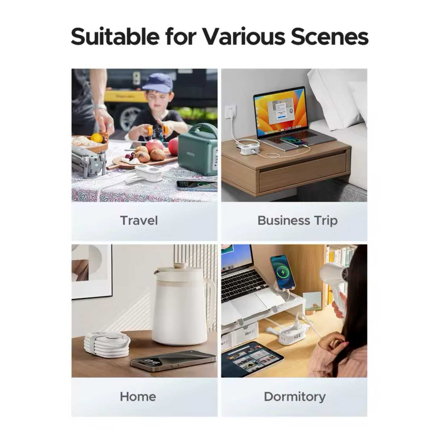 Multiple options: 4AC sockets,2 USB-A interfaces, and 1 USB-C interface